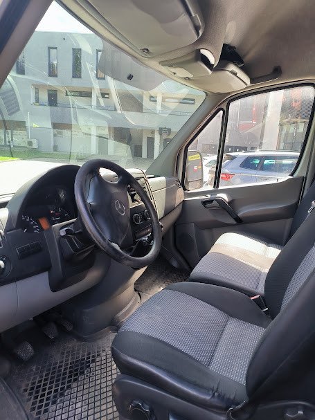 Dodávka skriňová Mercedes Sprinter, 3mieste, diaľničná, prevádzková hmotnosť 2080kg, celková technická 3500kg, takže odvezie cca 1400kg v rámci pasažierov.